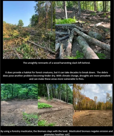 It is acceptable for forestry companies to pile, bury or burn left over timber slash. There is however, another approach. Forestry Mulching.